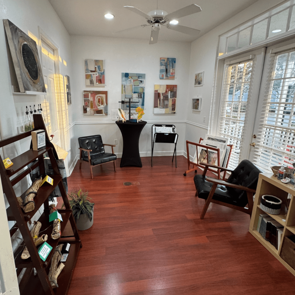 For larger events, our spacious main room can comfortably host 20-25 attendees. This versatile space is ideal for seminars, training sessions, or small conferences, offering ample room for presentations and interactive discussions. The main room’s also serves as an art gallery, creating an inviting and professional ambiance.